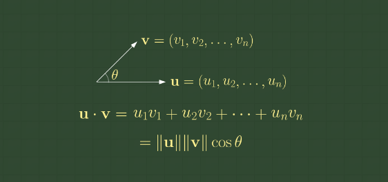 - 두 벡터의 방향이 같을 때 내적이 최대