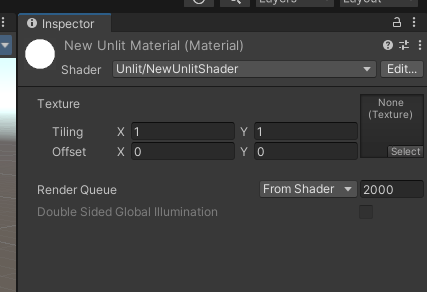 Unlit/NewUnlitShader 이므로, Unlit 이라는 카테고리 아래 NewUnlitShader 의 이름으로 쉐이더가 생기게 된다.