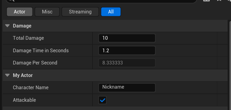 UPROPERTY(EditAnywhere, BlueprintReadWrite, Category = "Damage")