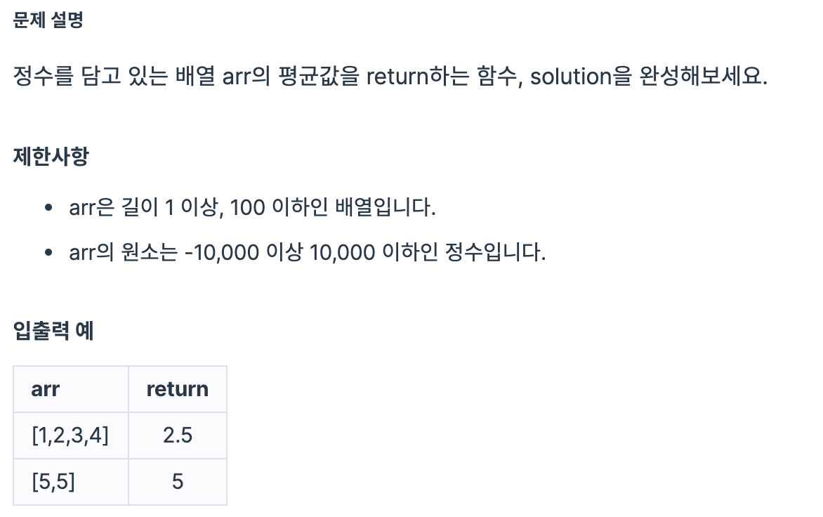 포문을 이용하여 배열 안의 수를 모두 더해주고, length를 이용하여 평균을 구해준 뒤 리턴했습니다!