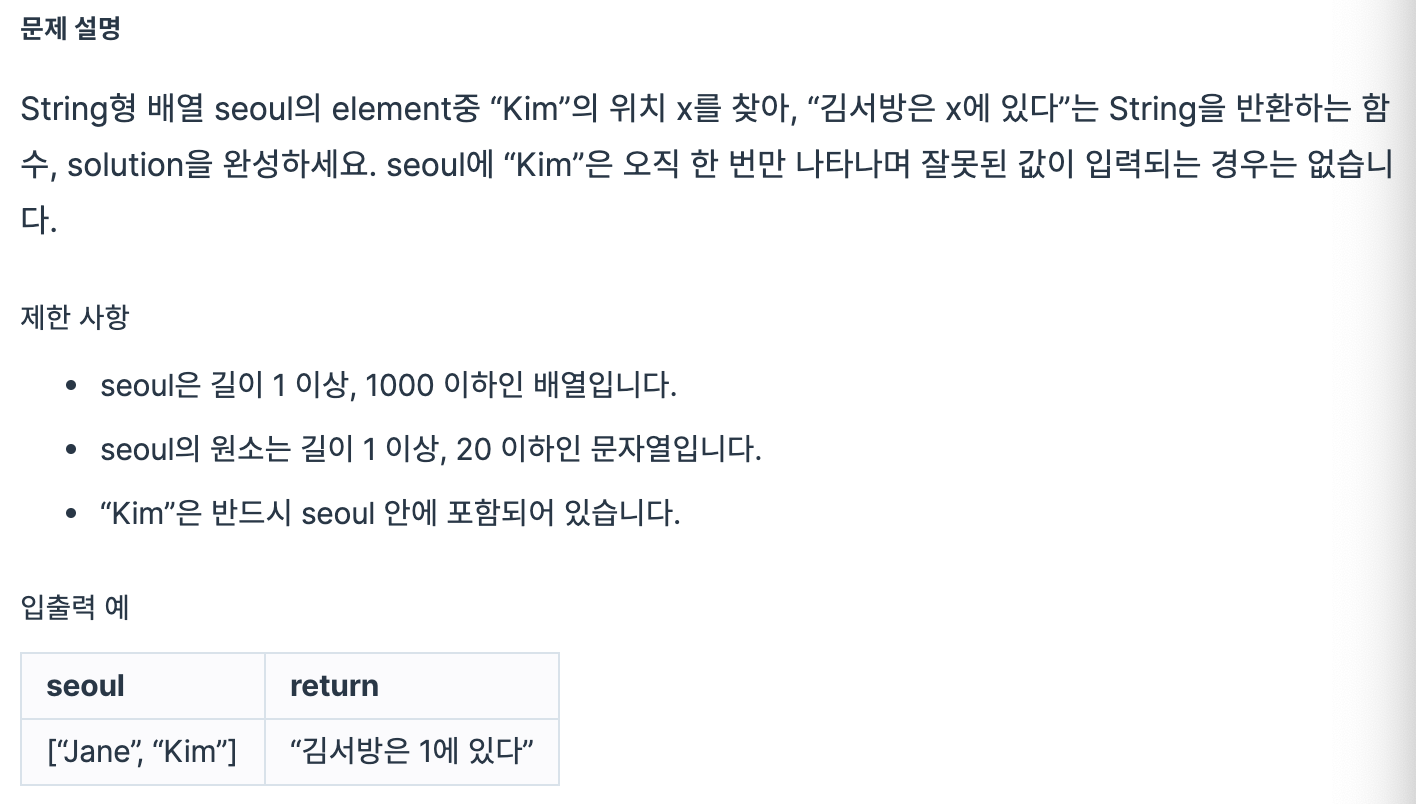 for문으로 seoul의 배열 안에 있는 모든 원소들을 완전탐색 해주었습니다.