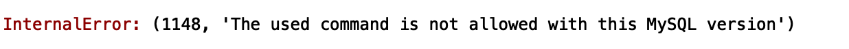 파이썬으로 mysql에 연결할때는 처음에 위와 같은 코드를 작성해주어야하는데 저 connect 문 뒤에 local_infile=1을 꼭 추가해주어야합니다!! 그럼 아마 될거에요!