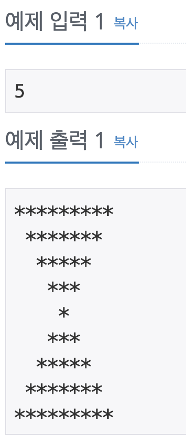 첫째 줄부터 2×N-1번째 줄까지 차례대로 별을 출력한다.