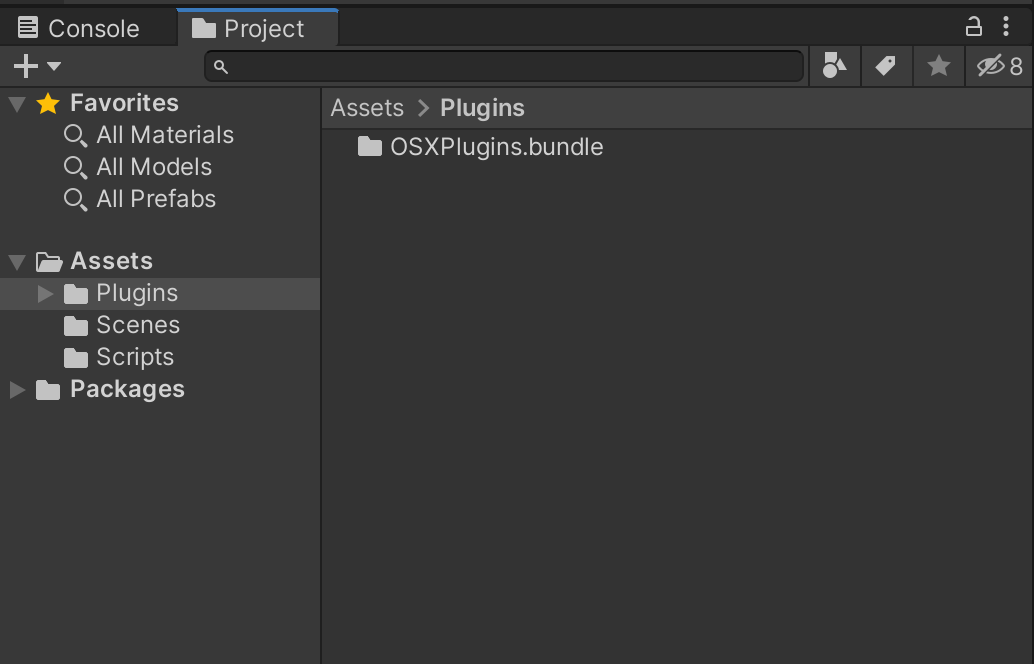 유니티 Assets폴더 밑에 Plugins 폴더를 만들어 bundle 파일을 옮겨넣습니다.