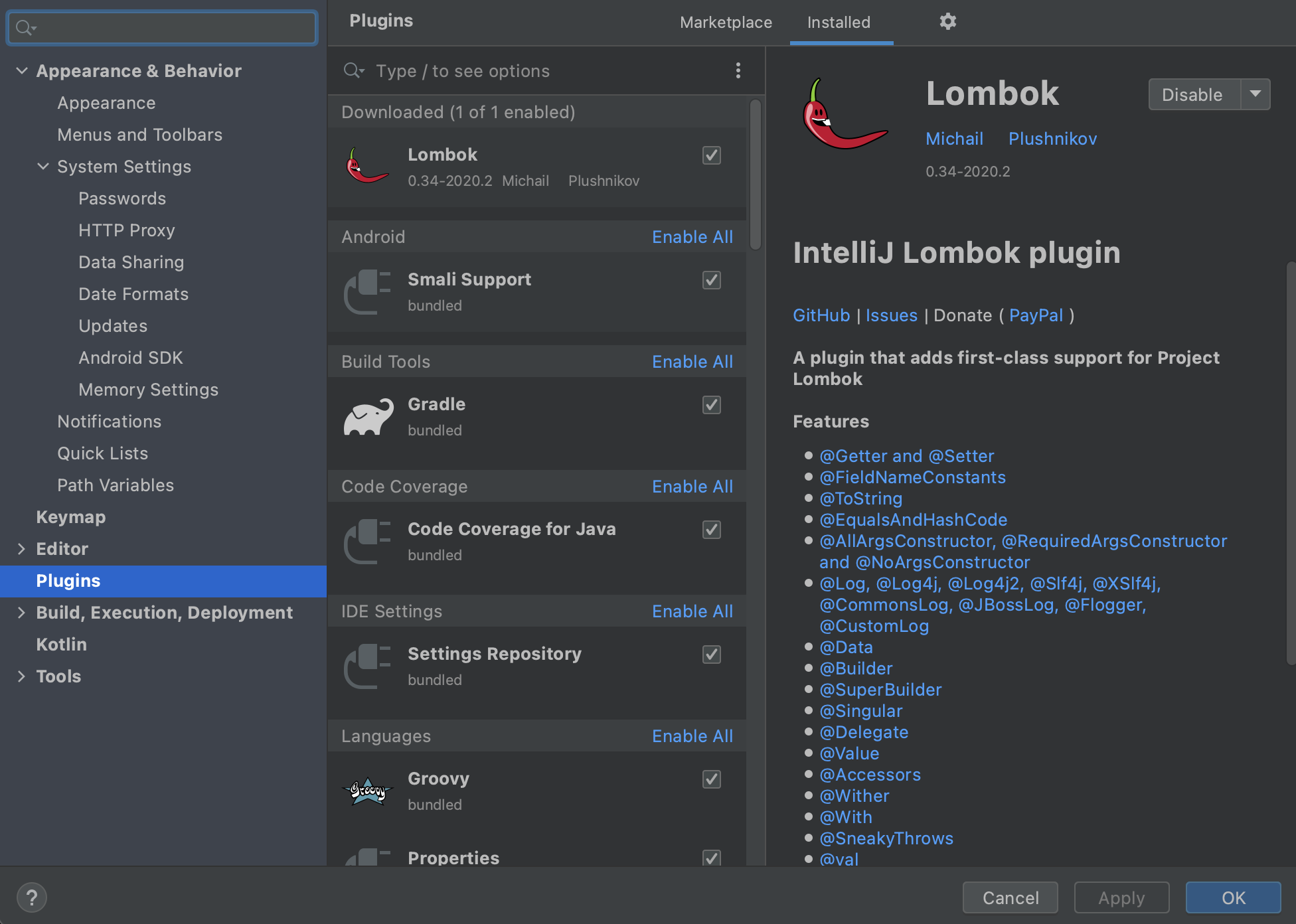 Lombok 추가