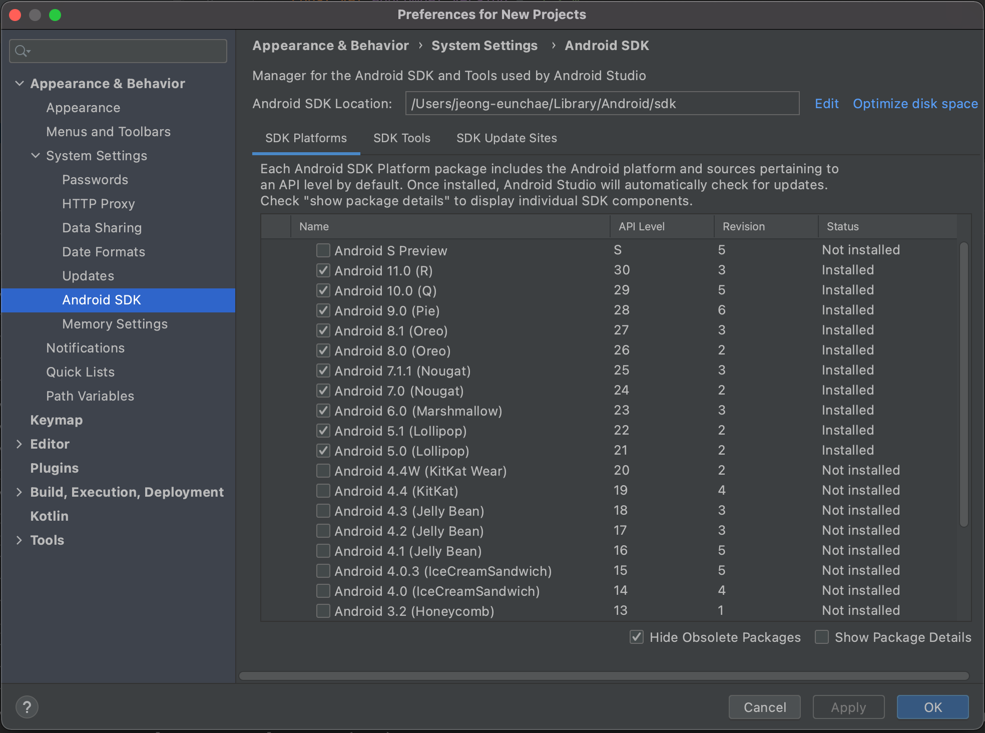 1. Android SDK : Android 5.0 ~ 최신버전까지